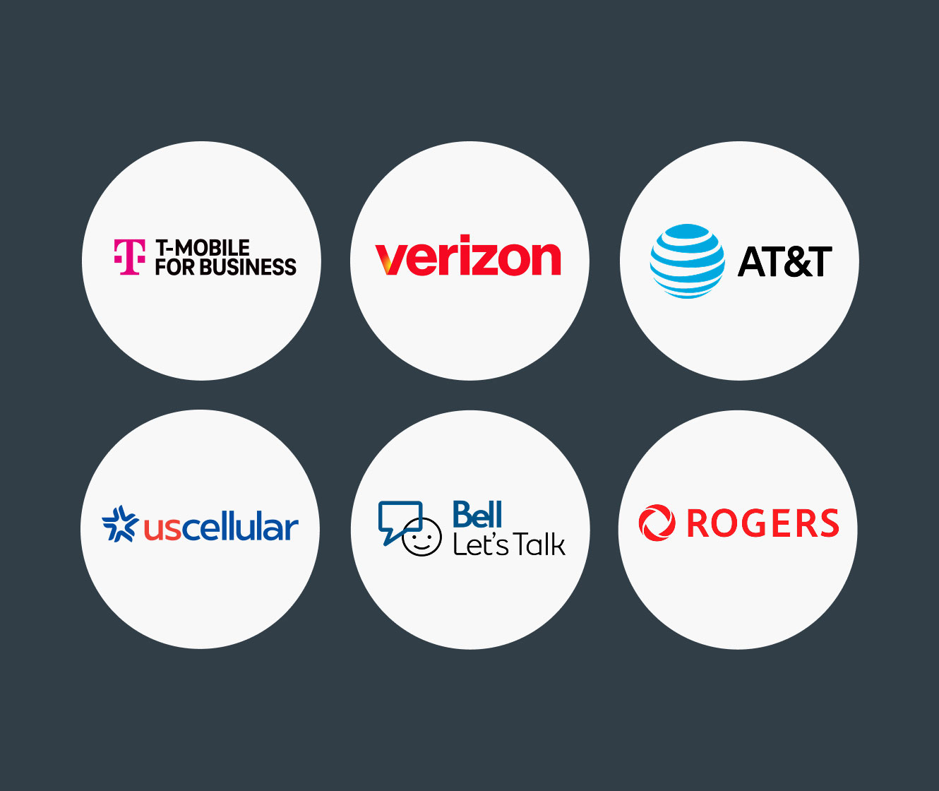 Ooma AirDial works with T-Mobile for Business, AT&T, Verizon, UScellular, Rogers, Bell.